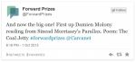 Anyhow.. I'd love to hear damien give a poetry reading, I do hope some footage becomes available ! As far as I am aware there was no live stream of this event last night.