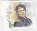 Here is a scan of the watercolor Sae made for my birthday last year. She knows how fond I am of that particular picture! He looks so sad it makes my heart ache to look at it.