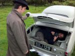Is that from behind the scenes photo of being human when they filmed when Hal and Cutler were looking behind the car's trunk where the body was, and was Toby himself in that trunk with camera or do I remember wrong?