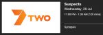 So, the schedule changed and the previously advertised new episode of Suspects was no longer showing as airing at 11pm 29 July on 7TWO Australia. But, the episode is available on the Channel 7 player!