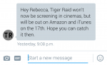 Despite the reassuring response from Altitude on Wednesday, there is not a sign of cinema screenings for Tiger Raid for tomorrow, so perhaps we can, sadly, assume the 'tbc' part of their statement is open ended...